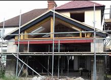 Four doors away in the same street a similar extension nears completion, this time with a flying first floor.