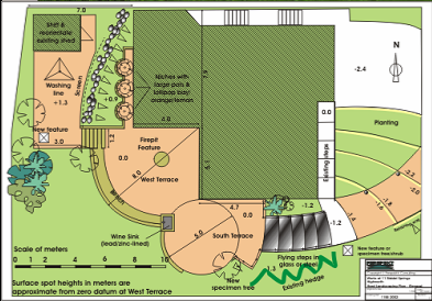 At the upper level, practical needs were met by moving a shed and drying space into the corner of the plot, separated from the orangery by a screen and planting.